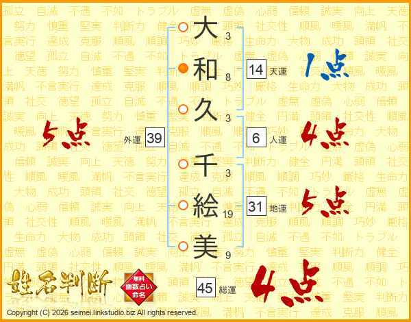 大和久千絵美さんの総運は45画の4点!