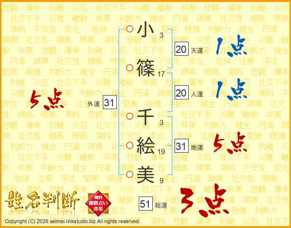 小篠千絵美さんの総運は51画の3点!