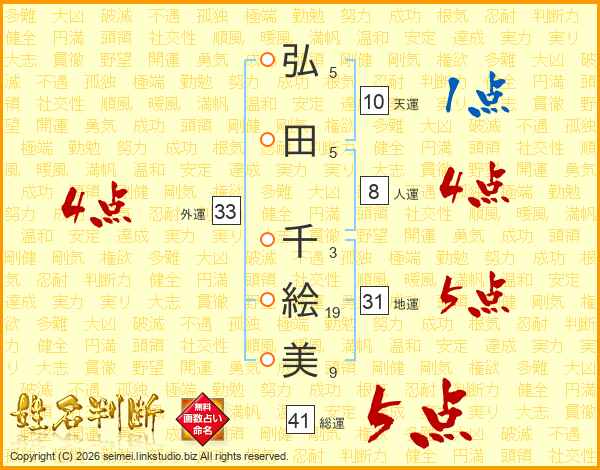 弘(5画)田(5画) 千(3画)絵(19画)美(9画)