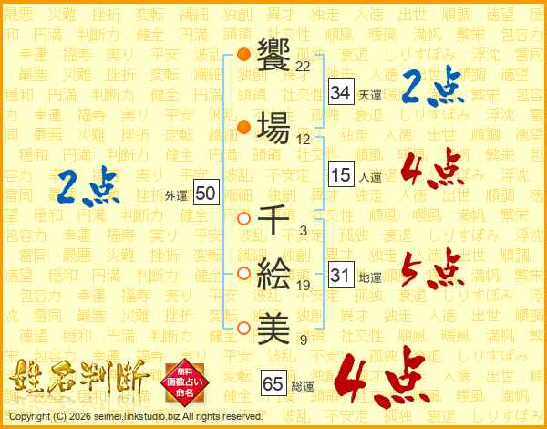 饗場千絵美さんの天運は34画の2点!