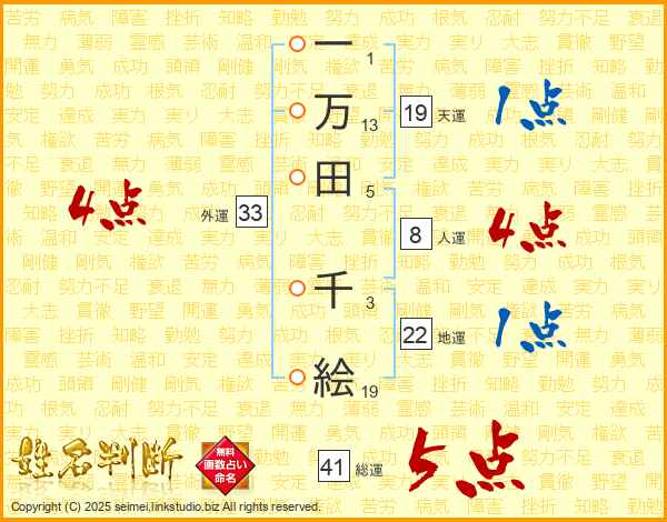 一(1画)万(13画)田(5画) 千(3画)絵(19画)