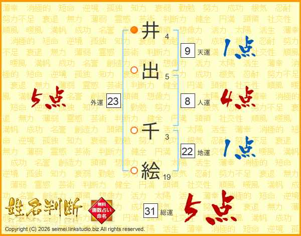 井出千絵さんの地運は22画の1点!