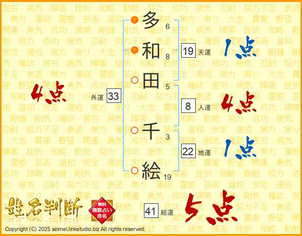 多(6画)和(8画)田(5画) 千(3画)絵(19画)