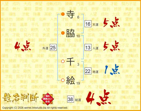 寺脇千絵さんの総運は38画の4点!