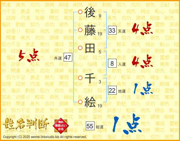 後藤田千絵さんの天運は33画の4点!