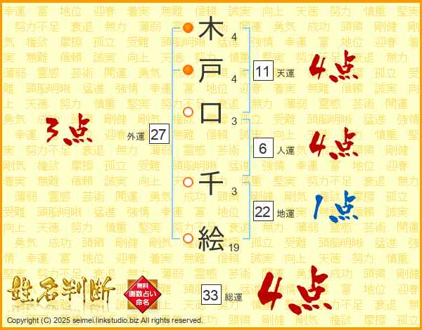 木(4画)戸(4画)口(3画) 千(3画)絵(19画)