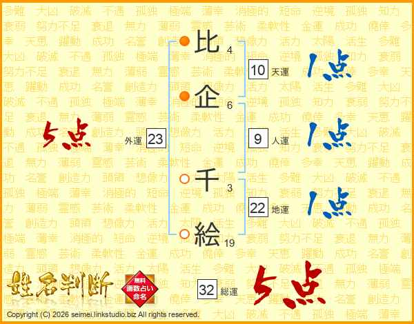 比企千絵さんの総運は32画の5点!