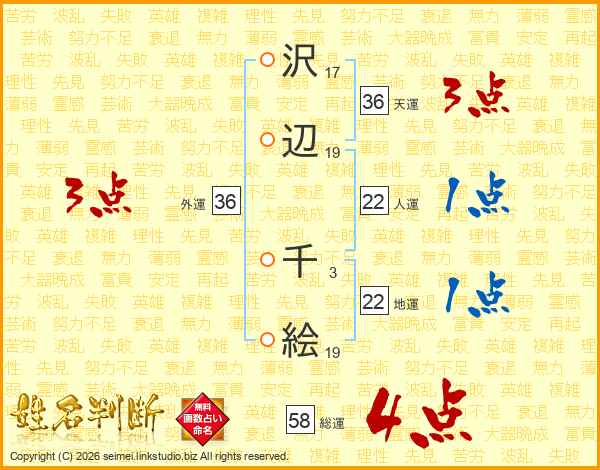 沢(17画)辺(19画) 千(3画)絵(19画)