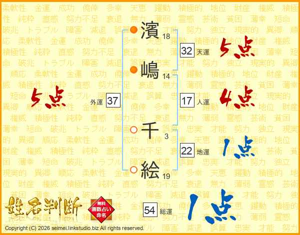 濱嶋千絵さんの総運は54画の1点!