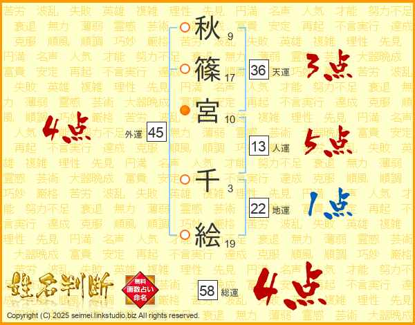 秋(9画)篠(17画)宮(10画) 千(3画)絵(19画)