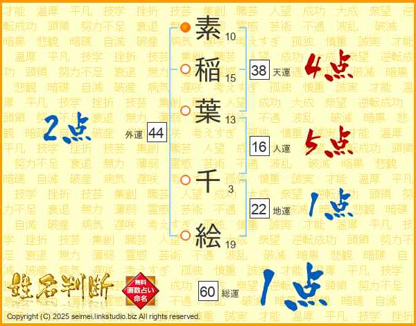 素稲葉千絵さんの天運は38画の4点!