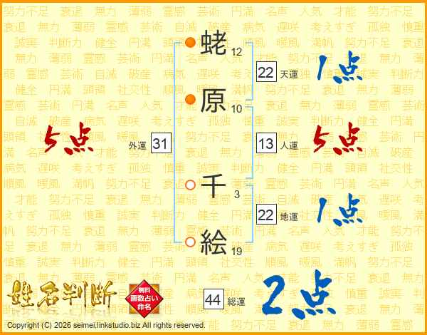 蛯原千絵さんの総運は44画の2点!