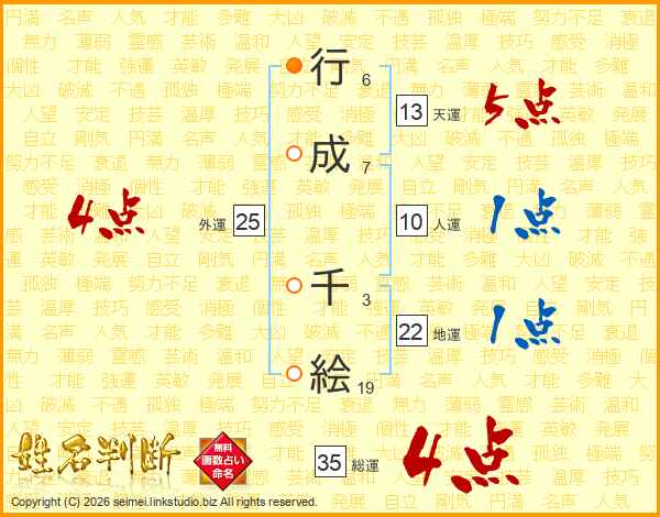 行成千絵さんの総運は35画の4点!