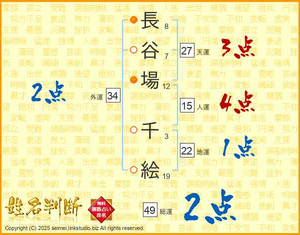 長谷場千絵さんの総運は49画の2点!