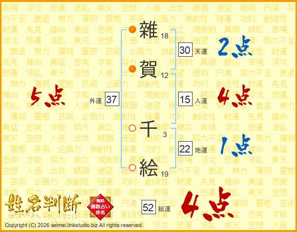 雜賀千絵さんの総運は52画の4点!
