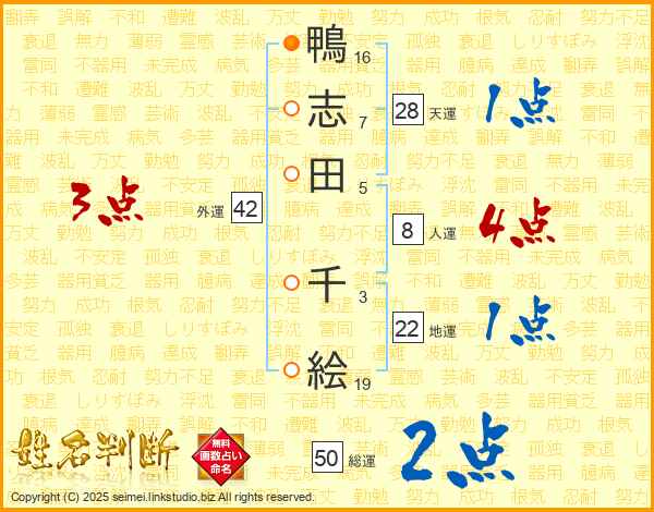 鴨志田千絵さんの天運は28画の1点!