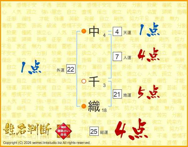 中千織さんの総運は25画の4点!