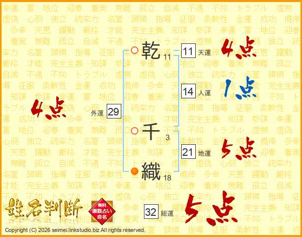 乾千織さんの天運は11画の4点!