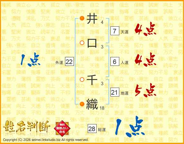井口千織さんの総運は28画の1点!