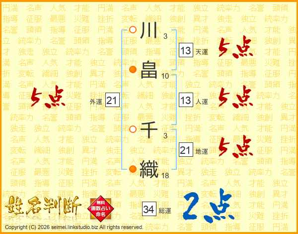 川畠千織さんの外運は21画の5点!