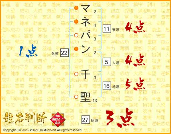 マ(2画)ネ(4画)パ(3画)ン(2画) 千(3画)聖(13画)