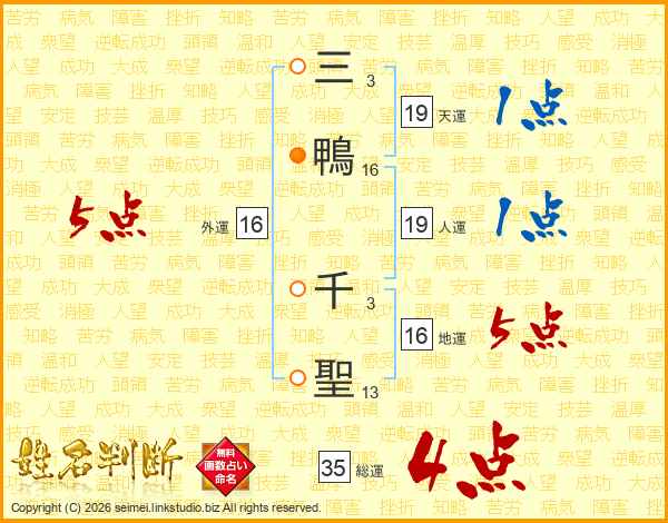 三鴨千聖さんの外運は16画の5点!