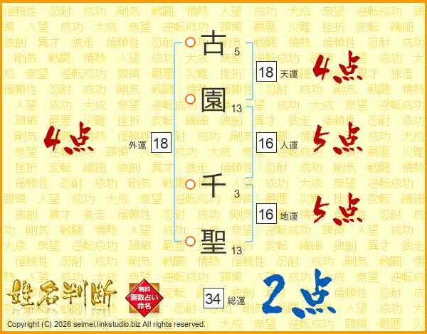 古園千聖さんの外運は18画の4点!
