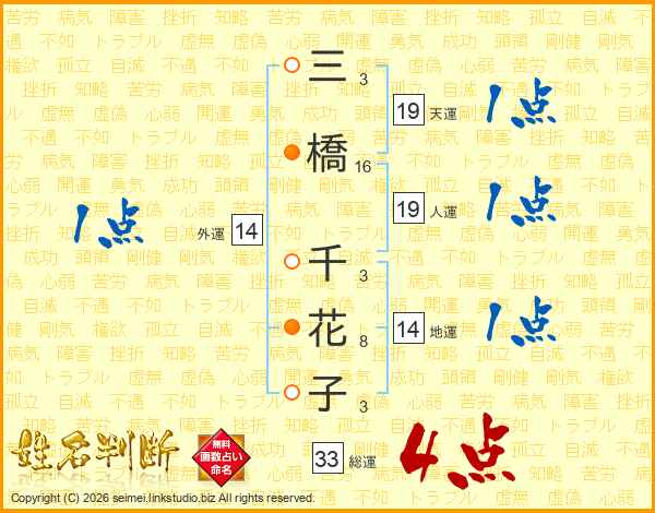 三橋千花子さんの総運は33画の4点!