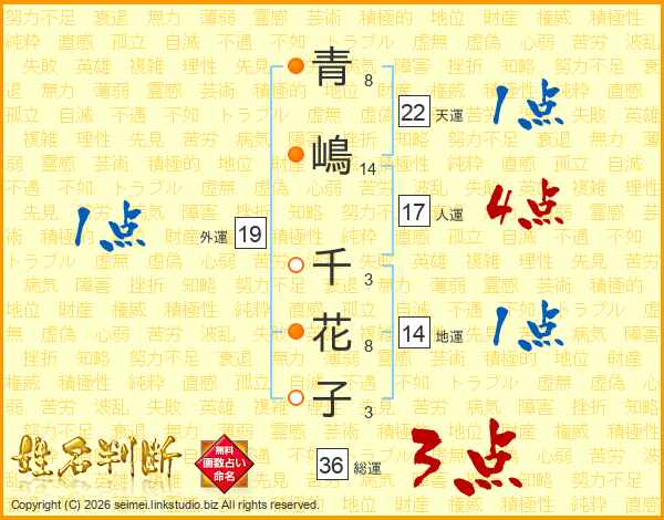 青嶋千花子さんの人運は17画の4点!