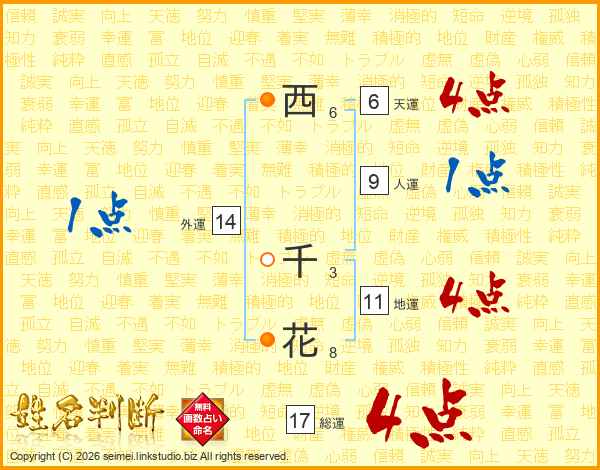 西千花さんの総運は17画の4点!