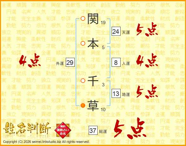 関本千草さんの総運は37画の5点!
