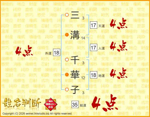 三溝千華子さんの天運は17画の4点!