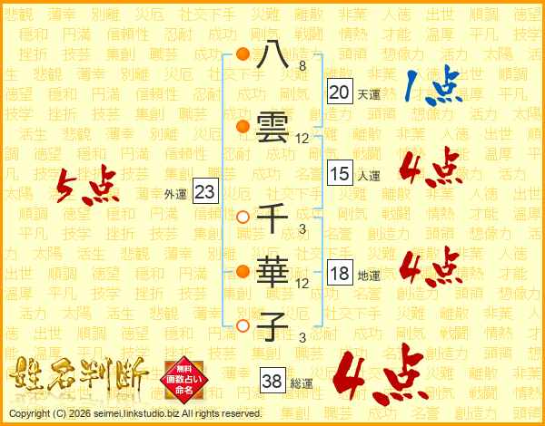 八雲千華子さんの総運は38画の4点!