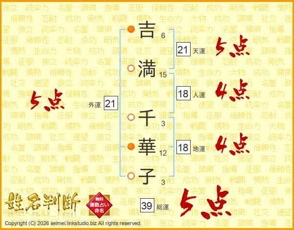 吉満千華子さんの総運は39画の5点!