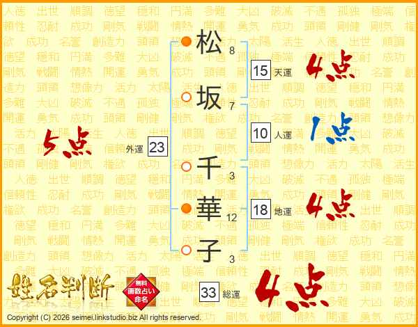松坂千華子さんの総運は33画の4点!