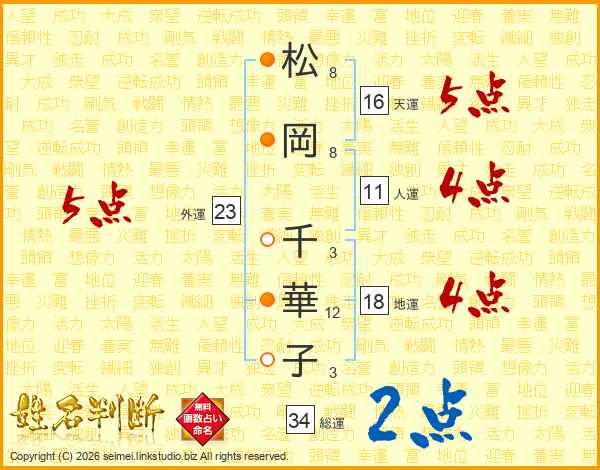 松(8画)岡(8画) 千(3画)華(12画)子(3画)