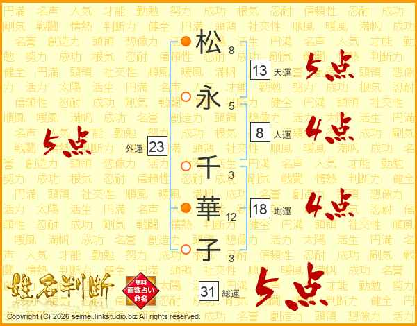 松(8画)永(5画) 千(3画)華(12画)子(3画)