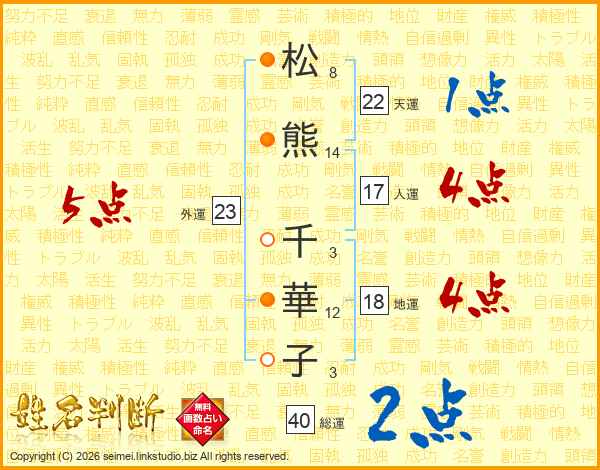 松(8画)熊(14画) 千(3画)華(12画)子(3画)