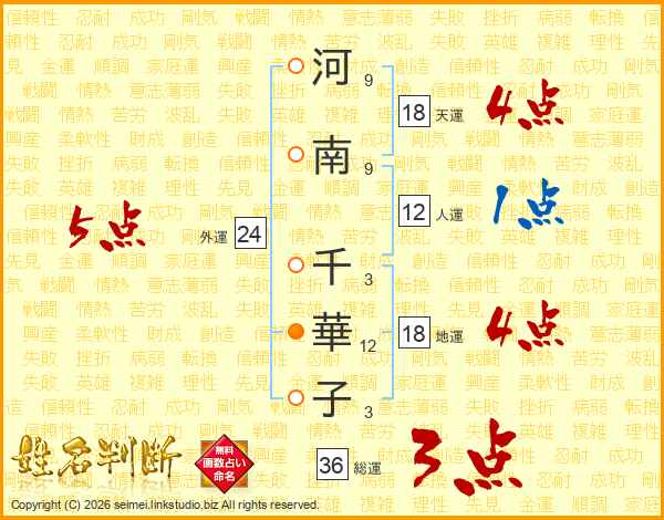 河南千華子さんの総運は36画の3点!