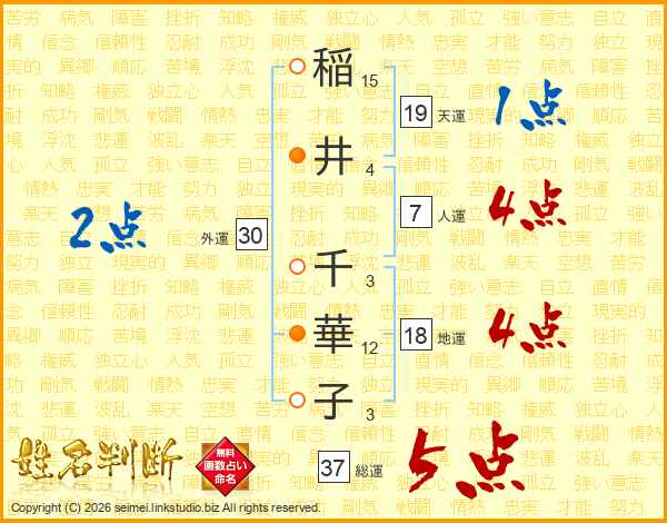 稲井千華子さんの総運は37画の5点!