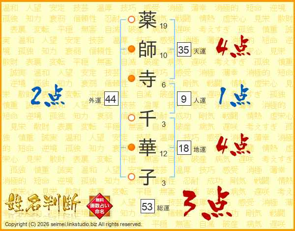 薬師寺千華子さんの外運は44画の2点!