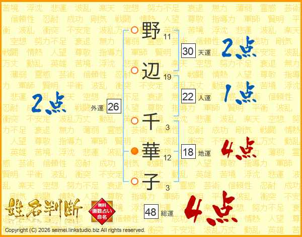 野辺千華子さんの天運は30画の2点!