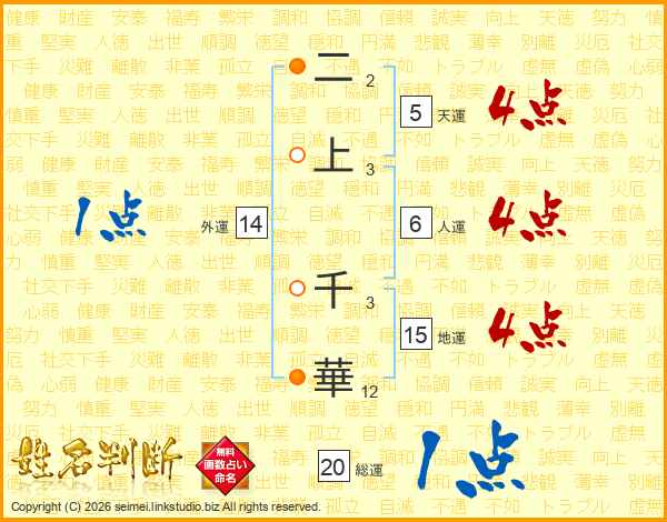 二上千華さんの総運は20画の1点!