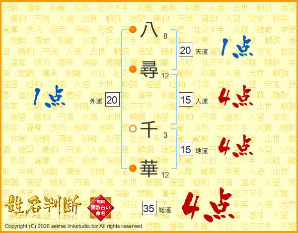 八尋千華さんの総運は35画の4点!
