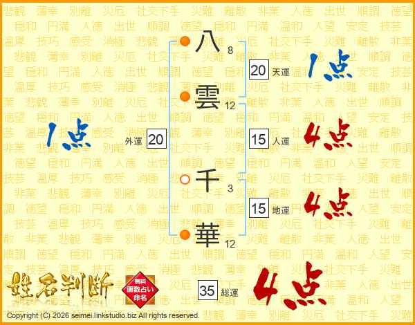 八雲千華さんの総運は35画の4点!