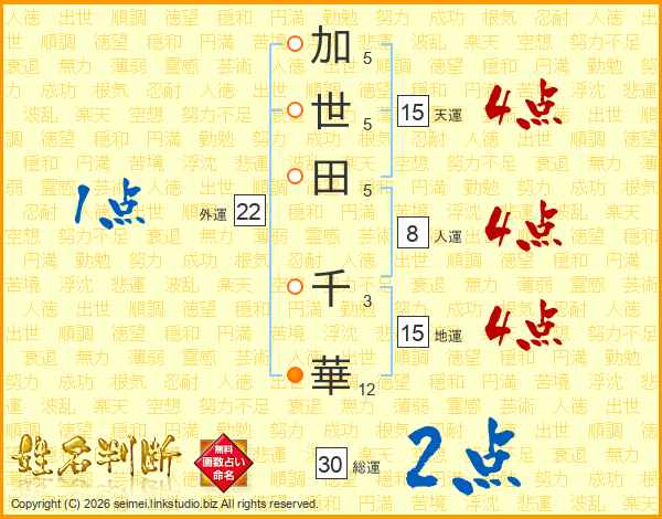 加世田千華さんの総運は30画の2点!