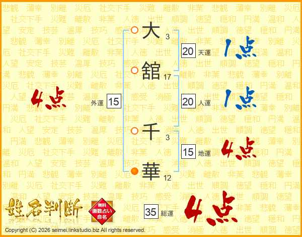 大舘千華さんの総運は35画の4点!