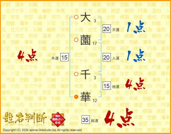 大薗千華さんの総運は35画の4点!
