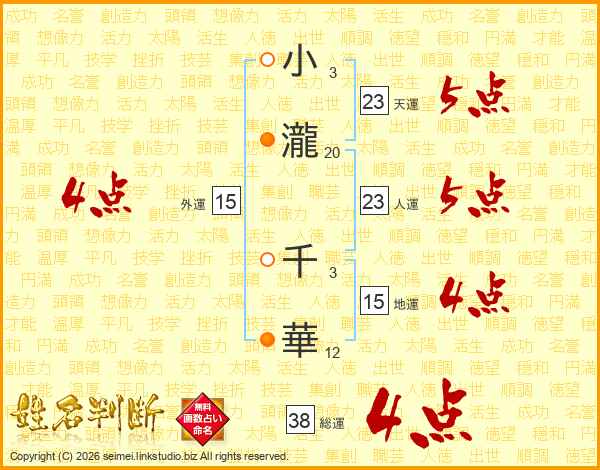 小瀧千華さんの総運は38画の4点!