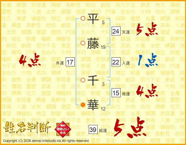 平藤千華さんの総運は39画の5点!
